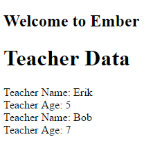 To keep things really simple all we want to do is connect to our API with the default JSON API adapter and retrieve the teacher data. Then we'll display it to the user.
