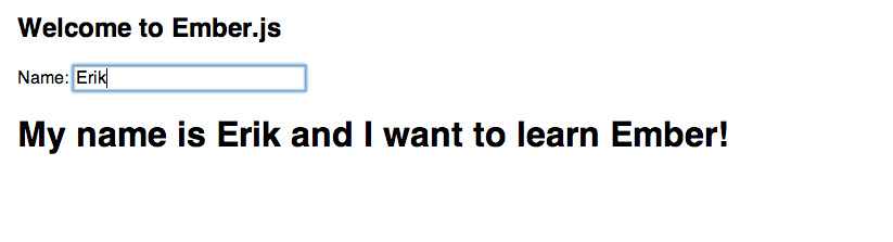 <h1>My name is {{name}} and I want to learn Ember!</h1>