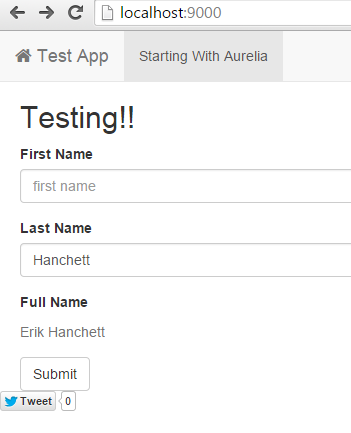 <input type="text" value.bind="firstName" class="form-control" id="fn" placeholder="first name">